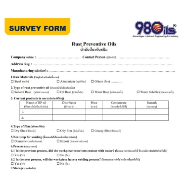 2. Survey form of Rust Preventive Oils TH